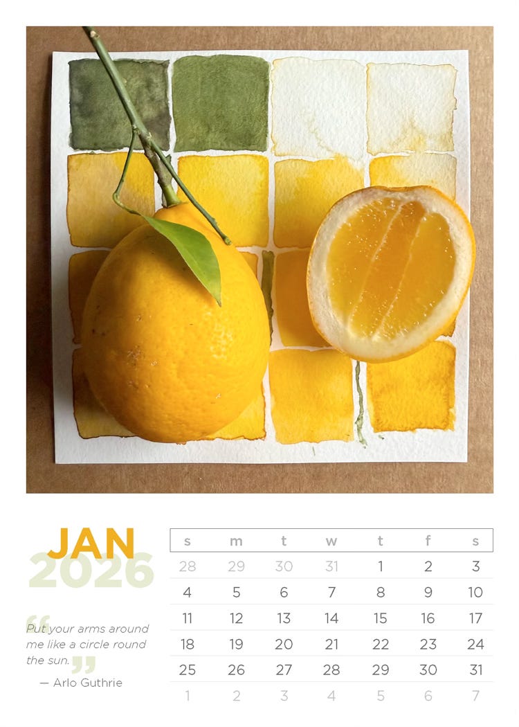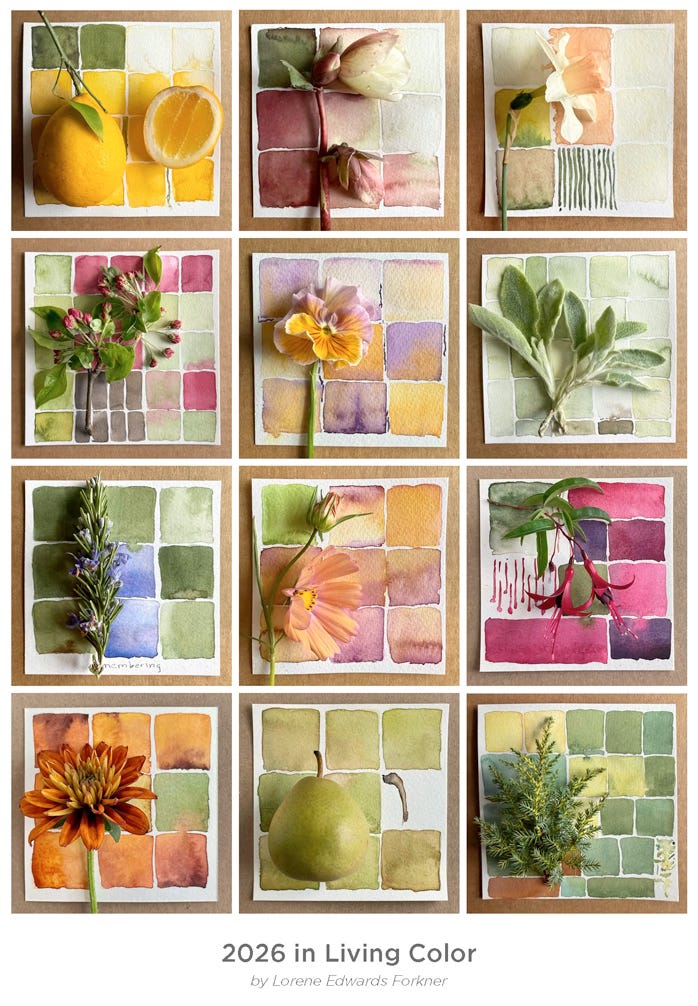 Thank you to everyone who ordered the 2026 In Living Color calendar. This is my fifth year creating this project and it’s definitely one of my favorite seasonal rhythms. With my calendar on my desk and yours on a windowsill or tabletop, I feel like we’re walking our days together. I appreciate the company. Inventory has sold out but if you’d like, you can download the month of January at the link below