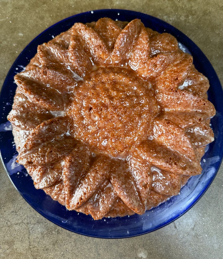 After reading the above quote several times over, I felt compelled to make a cake — I’m very subject to the power of suggestion when it comes to cake. Faced with using ingredients that were already in the house I landed on citrus. I love all citrus and always feel rich when I’ve got a stash of lemons in the refrigerator. Pulling out a (giant) sunflower bundt pan that my mom gave me seemed like a good choice for a chilly spring day. I know we’re not supposed to lick the spatula but I couldn’t resist, and it didn’t disappoint. The cake took forever to bake — hey, no shade on my well-loved and charred pizza stone pictured above! To be perfectly honest the enormous cake was a bit of a disappointment in the end. I was looking for seriously punchy lemon cake, this one is delicious but demure. However, should you feel compelled to make a cake this week, I highly recommend this recipe for “Poppy Seed Lemon Cake” from deb perelman. It’s amazing and zingy with lemon!