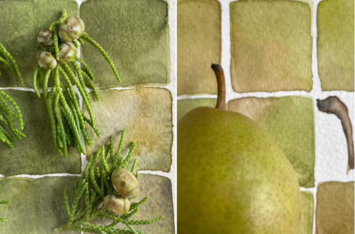 Hopefully life is feeling more colorful. Generously share your practice with others and ask them to suggest what you should paint next. I love it when someone brings me “something to paint” because then I know that they too are looking closely at the world around them. I believe paying attention with an open heart is good for us all.
