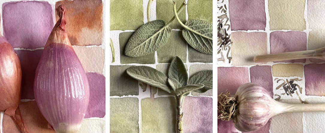 Creating nature-based color studies is an absorbing practice. Seeing what is easily overlooked enlarges our world. I think of color as my mantra – a willful distraction to focus my attention. The world goes quiet.