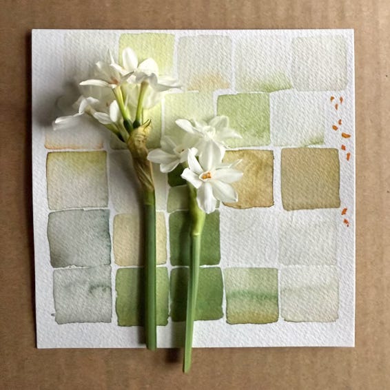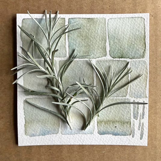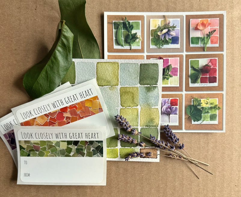 Four times a year — winter, spring, summer and fall — all paid subscribers can fill out a form to receive a complimentary Color Collection of simple things that I find inspiring and delightful. The above photo is an example of colorful bits that might be included. The collection may include a postcard, stickers, or a scrap of vintage garden ephemera. Calming dried lavender – absolutely, it’s the best cure for the stress of everyday life. Pressed flowers? A zine? I have so many ideas. For sure each seasonal collection will include an original color study.
