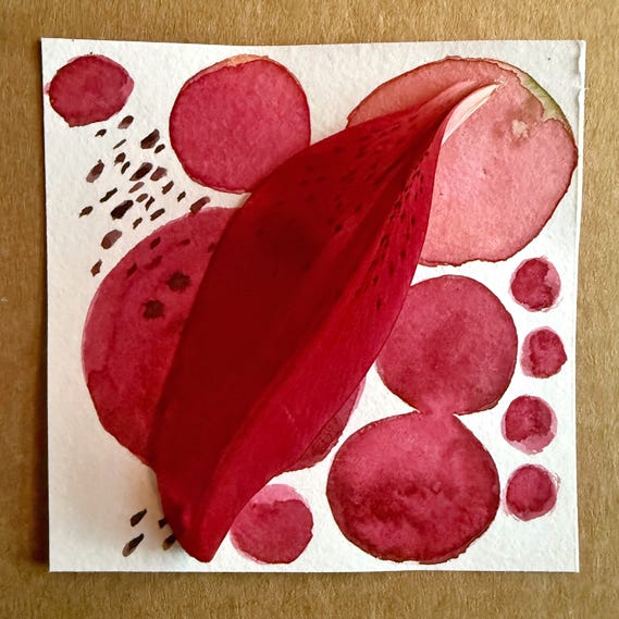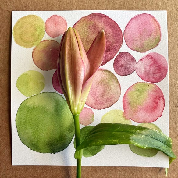 On a week when we’re finding our feet again after mom’s fall it’s been a comfort to watch the deep merlot colored lilies emerge. Learning in close, nose to paint and paper, I catch a slight but delicious scent from these beauties — a whiff of the coming growing season