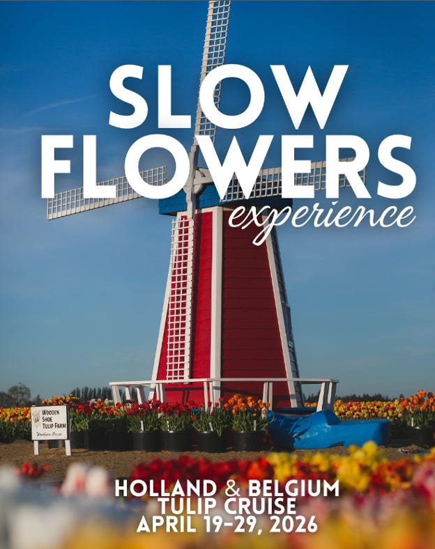 You’re invited to join Slow Flowers Founder Debra Prinzing and me on a very special adventure as we tour Holland and Belgium during tulip time. Our “Floral & Garden European River Cruise” taking place April 19-29, 2026, features exclusive garden and floral venues while aboard an AmaWaterways ship – follow link for a video preview of our cruise.