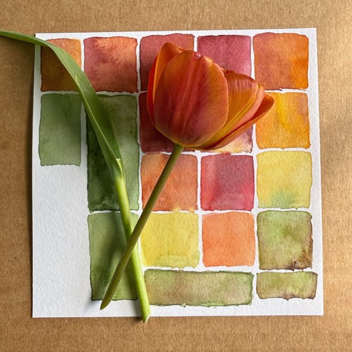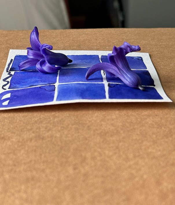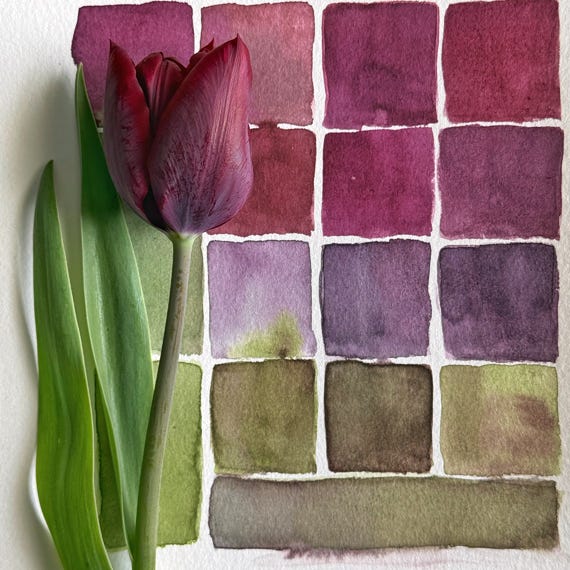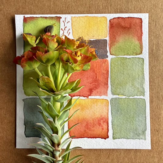 For the past seven years I have maintained a color study practice recording the colors I find in my garden and beyond in the natural world; rocks, feathers, driftwood, shells, anything and everything that captures my fancy. Swatching colors is not botanical illustration, it’s an exercise in learning to see. In that way color is my mantra, a willful distraction I use to cultivate attention. I’m so glad you’re here.